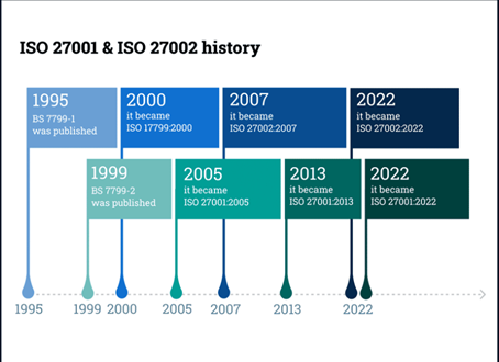 La primera versión de ISO 27001 se publicó en 1999 bajo el nombre de BS 7799-2, y ha sufrido