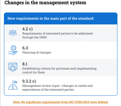 La parte principal de ISO 27001, es decir, las cláusulas 4 a 10, ha cambiado solo